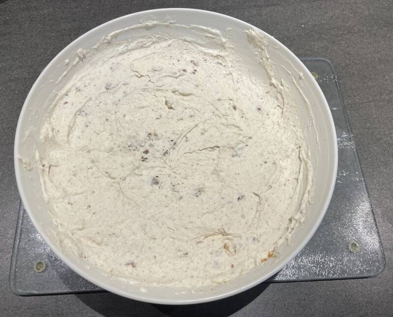 Mix tot de slagroom redelijk dik is doe dan de roomkaas er bij. zorg ervoor dat je de roomkaas er ook goed doorheen mixt.